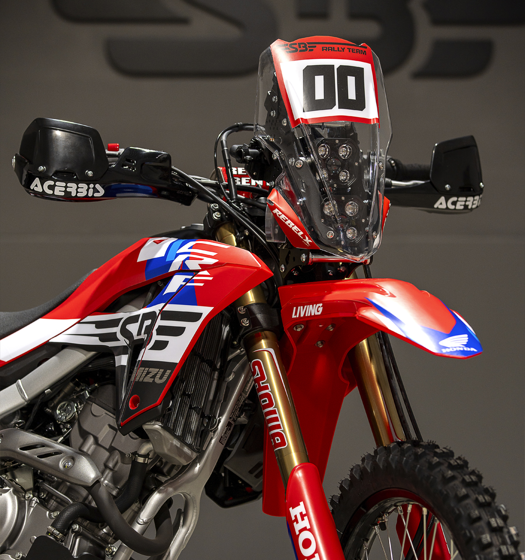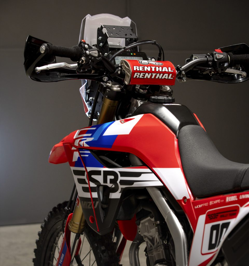 • Portamatrículas SB Rally, intermitentes offroad, puños de espuma ProGrip y muchos más detalles.