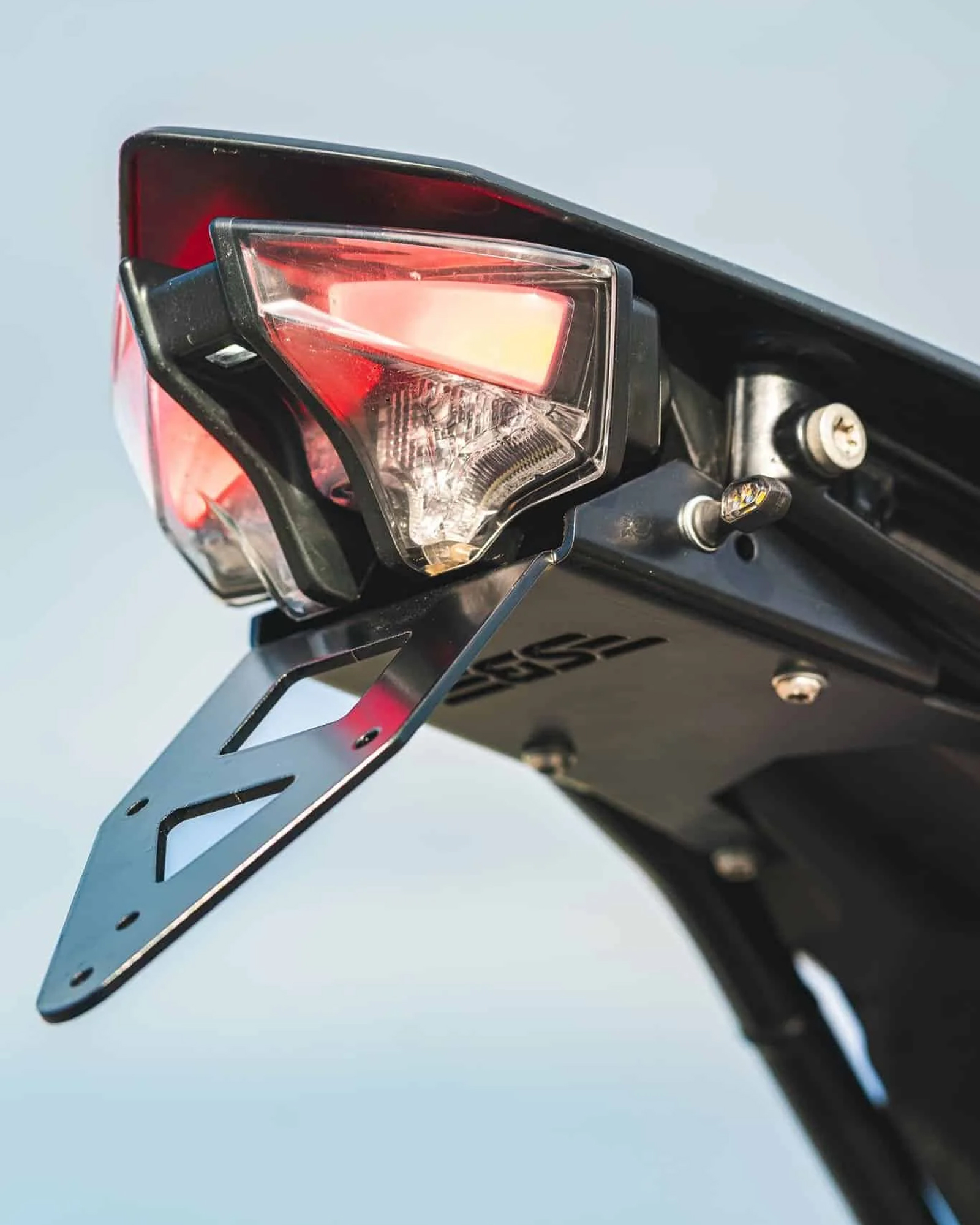 Compatible con intermitentes de serie y con matrículas pequeñas tipo enduro o grandes gracias al soporte incluido.