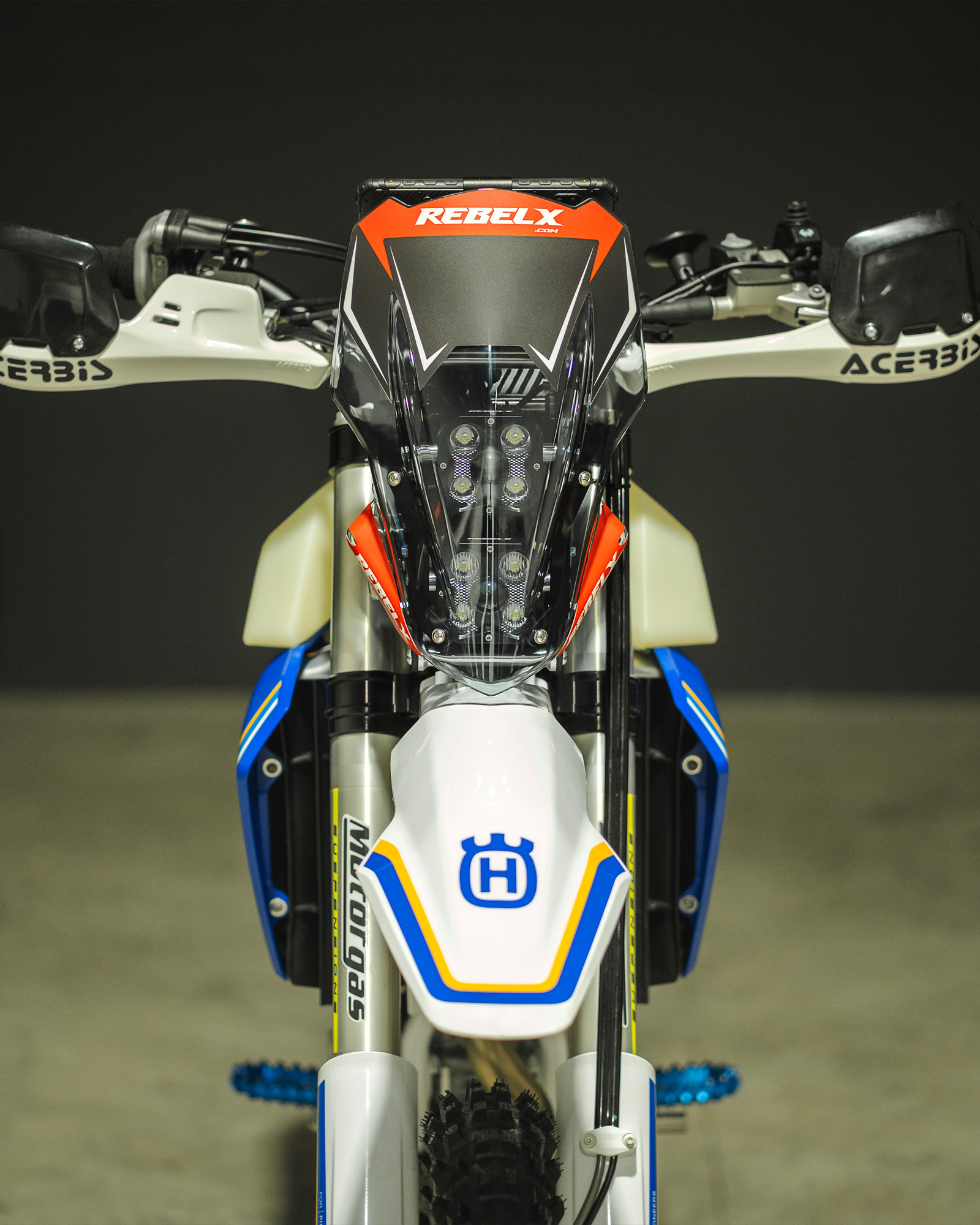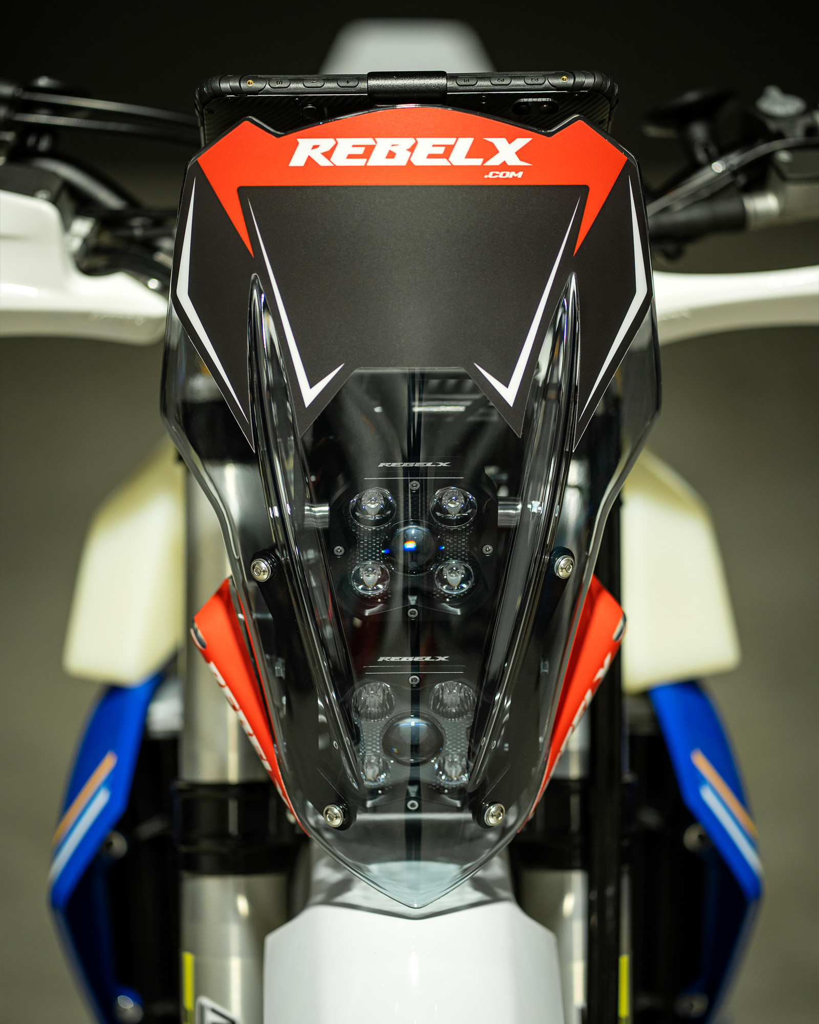 El Kit Rally Ultralight de Rebel X para Husqvarna (2020–2025) incluye luces Rebel X de 80W o la opción de luces Street Legal de 32W, combinando máxima visibilidad, ligereza y fiabilidad. Este concepto innovador está diseñado para cerrar la brecha entre los Rally Kits de gama alta y los adventure riders que buscan mejores luces, más protección contra el viento y un sistema versátil donde instalar GPS, tablet, smartphone o incluso un roadbook digital o clásico en papel.
