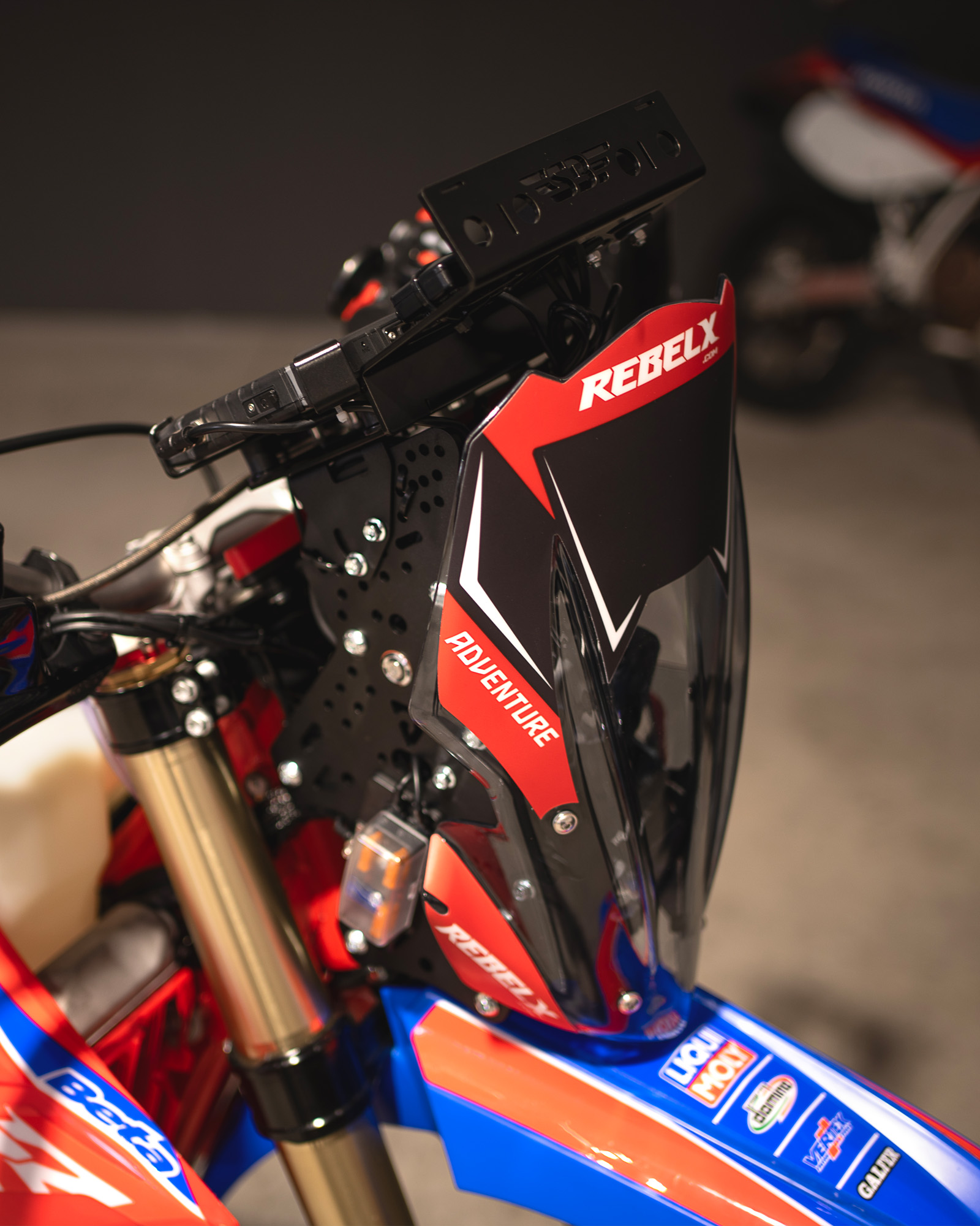 – LUCES REBEL X INCLUIDAS – 80 vatios en total – LUCES LEGALES Street Legal OPCIONALES – 32 vatios en total El Kit Rally Ultralight de Rebel X para Beta (2020–2025) incluye luces Rebel X de 80W y la opción de luces Street Legal de 32W disponible, combinando máxima visibilidad, ligereza y fiabilidad. Este nuevo concepto está diseñado para cerrar la brecha entre la gama alta Rally Kits y el promedio de aficionados Adventure rider que simplemente necesita mejores luces, más protección contra el viento y un lugar donde instalar GPS / Tablet / Smartphone o potencialmente un Roadbook Digital o papel clásico Roadbook Holder.
