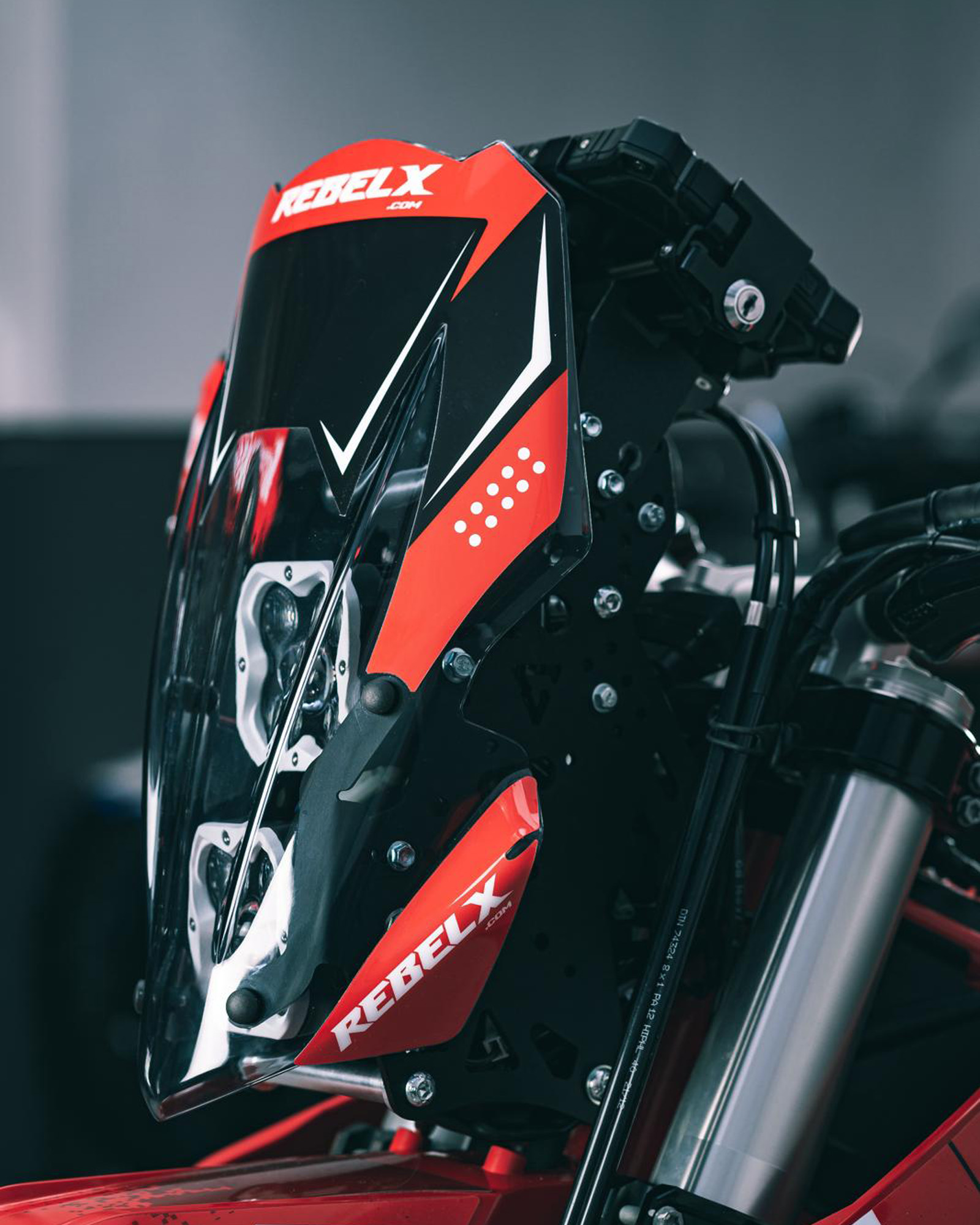 El Ultralight Kit RebelX compatible con GasGas 700, KTM 690 o Husqvarna 701, convierte tu moto en una auténtica adventure bike. Ligero, resistente y funcional, mejora la aerodinámica y ofrece una torre de navegación con espacio para montar GPS, tablet o roadbook, manteniendo siempre el peso al mínimo.
